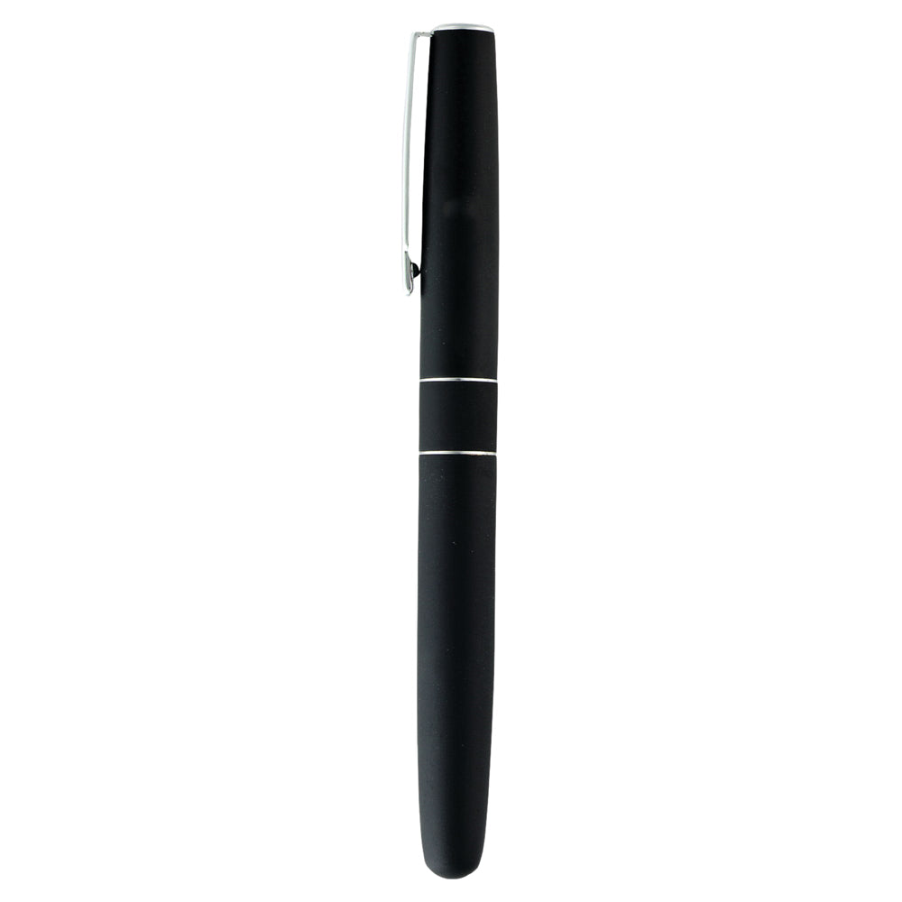 Spray rubber coat finish provides hours of comfort writing. Cap off design. Pen includes premium black roller ball ink cartridge. 0.7mm pen tip. Laser finish is shiny chrome.
