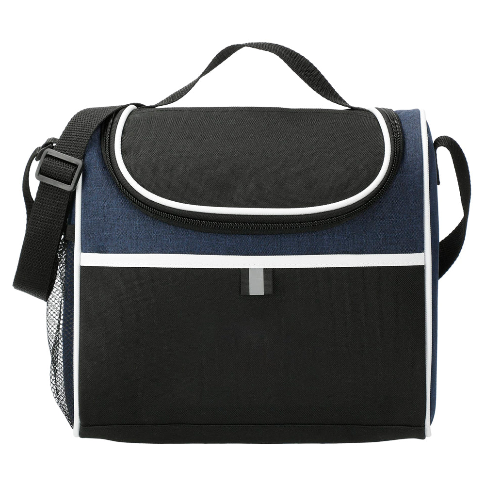 Insulated PEVA lining. Top grab handle. Side mesh pocket. Multiple decorating locations available. Two slip pockets on the front and top of cooler. Adjustable shoulder strap. Disclaimer: There may be minor variations in color of the actual product due to the nature of the fabric dyes, weaves and printing.