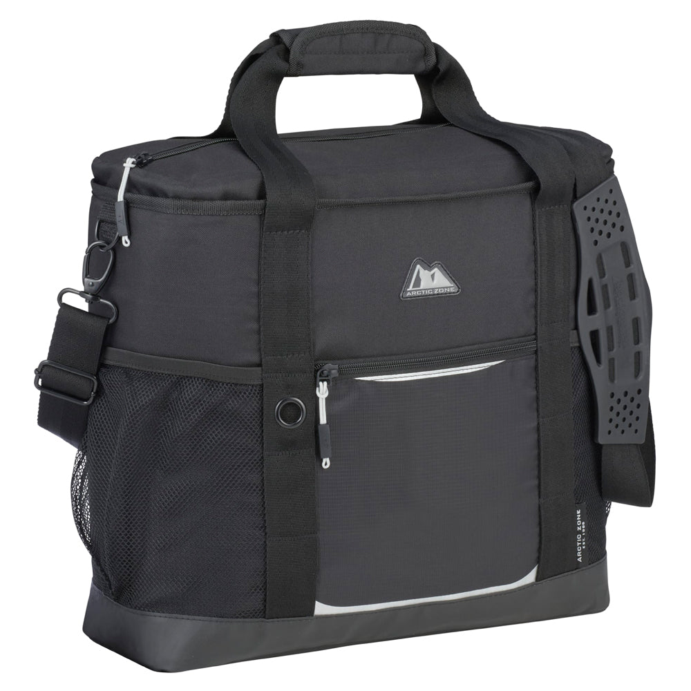 The Arctic Zone 30 Can Ultimate Sport Cooler features a sturdy, PEVA lined, zippered main compartment. This sport cooler includes grab handles, an adjustable shoulder strap, two side mesh pockets and a front zippered pocket.